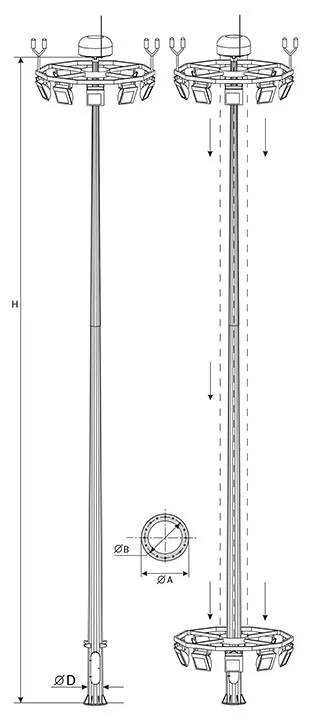 Многогранная прожекторная опора (мачта) МПО-35/3-М(6)-III